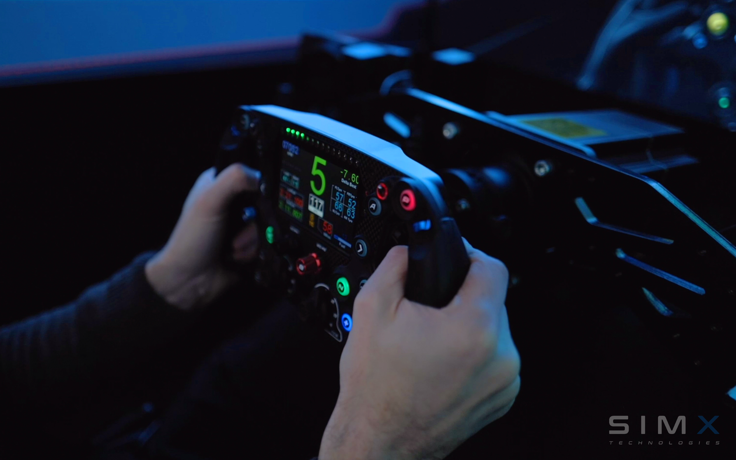 SimX have developed a highly configurable low latency 6DOF full motion simulator using the latest simulator technology combined with race engineering principles: a low mass, low inertia, rigid structure with low latency vestibular feedback, a 240hz visual system, surround sound and speed variable air flow. Realistic steering forces provide high fidelity tyre feedback to the driver with an active brake pedal system offering additional channels of haptic feedback. Human and vehicle telemetry is displayed in real time and logged for offline review and analysis.